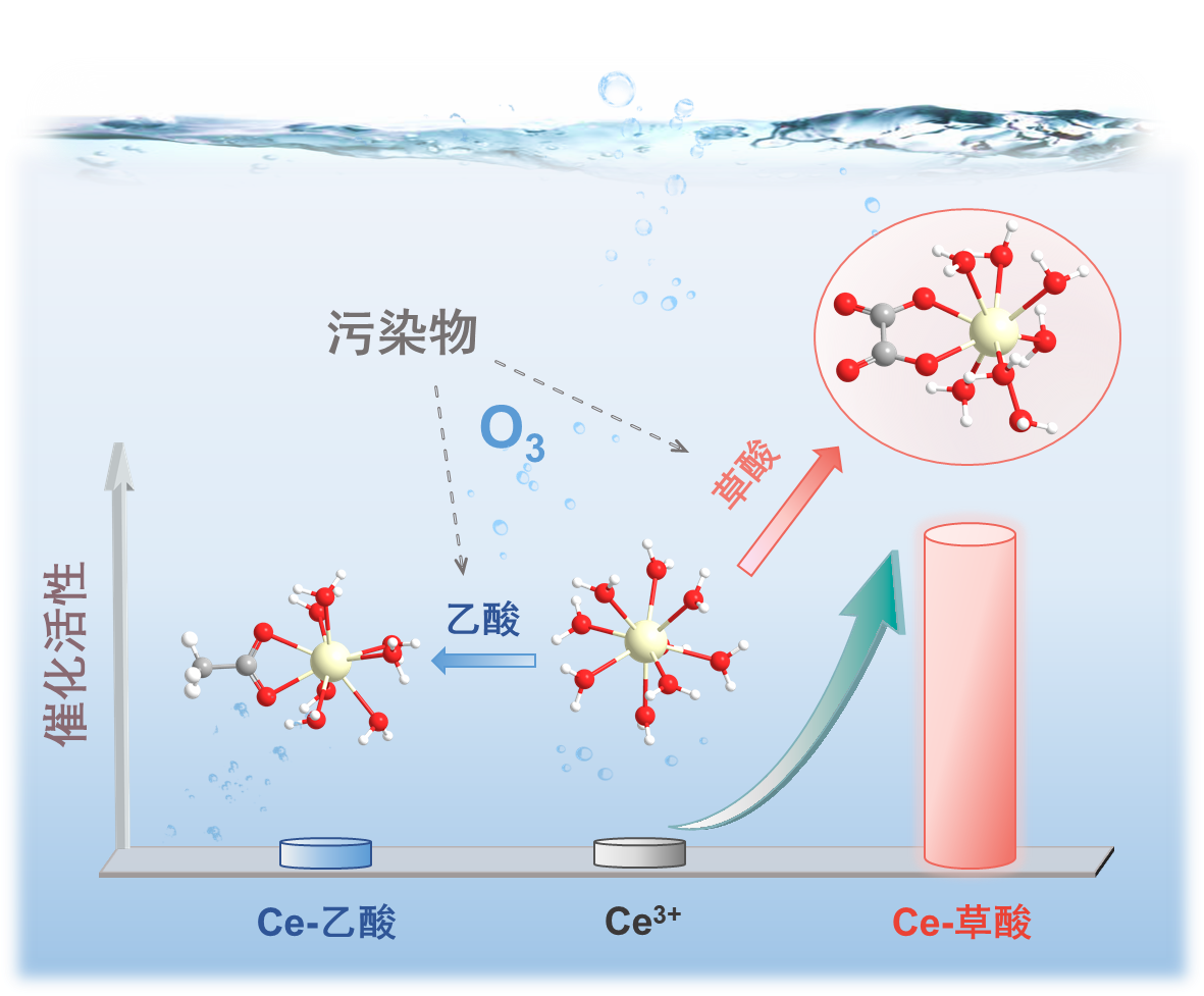 臭氧氧化是规模化水处理中广泛应用的高级氧化工艺。糖心视频-糖心视频在线观看 单超副教授、潘丙才教授课题组选取了臭氧氧化中本身催化惰性但蕴藏催化活性潜力的Ce(III/IV)为目标调控对象,基于有机物在臭氧氧化过程中普遍产生小分子羧酸为主要终端产物的认知,设想部分种类的小分子羧酸有望作为原位内生配体通过配位调控将Ce(III/IV)持续活化为臭氧氧化的催化剂。研究发现,有机物臭氧氧化降解生成的不同种类小分子羧酸配体对Ce(III/IV)的活化效应具有明显差异,其中草酸可作为强效配体显著活化Ce(III/IV),将臭氧分解速率常数和阿特拉津降解速率常数分别提高11.5倍和5.8倍;同等条件下乙酸并未对Ce(III/IV)表现出明显的活化效应。进一步研究发现,Ce(III)-草酸络合物是强化污染物降解的催化活性物种,草酸配体显著的供电子效应是活化Ce(III/IV)的关键;仅依靠原位持续生成的草酸(无需外源添加),微量Ce(III/IV)即可实现臭氧氧化的自催化矿化和污染物共降解。这一工作突破了外源添加有机配体这一传统调控策略在高级氧化体系中配体易降解失效、有机负荷明显增加的挑战,为探索面向真实应用场景的水处理催化活性调控提供了范例。