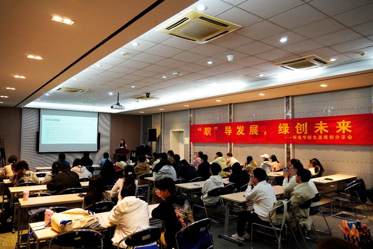 下午,学院开展了生涯规划分享会。江苏环保产业技术研究院股份公司人力资源部主任陈怡、南京大学环境规划设计研究院集团股份公司组织人事办副主任禹甸参加活动。陈怡、禹甸分别就环境企业的能力胜任度、环保行业的发展趋势以及人才的培养模式进行了深入的讲解和分享,结合自身工作经历,为同学们提供了宝贵的职业规划指导。